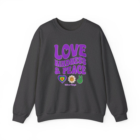 Kathryn the Grape Love, Kindness, and Peace Teen/Adult Heavy Blend™ Crewneck Sweatshirt