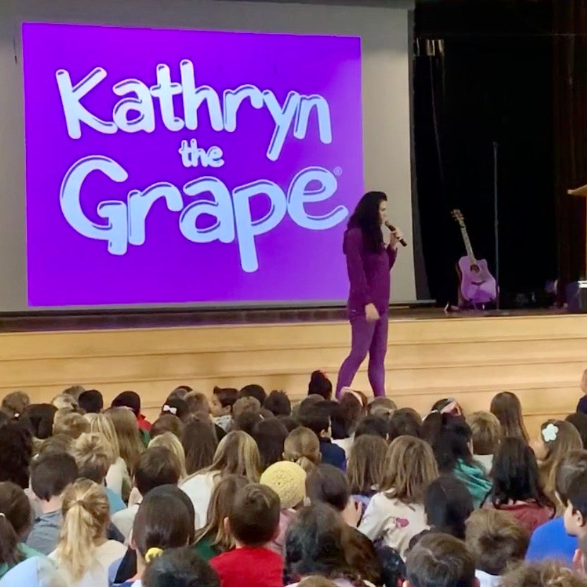 "Kathryn the Grape was such a fun and inspiring assembly for our school. She connected music, fun, and imagination with an inspiring message of following your dreams and spreading love and kindness in the world. My students walked out singing and have been referring back to the tools Kathryn the Grape shared with them. It was a great combination of social/emotional learning, character development, and music.