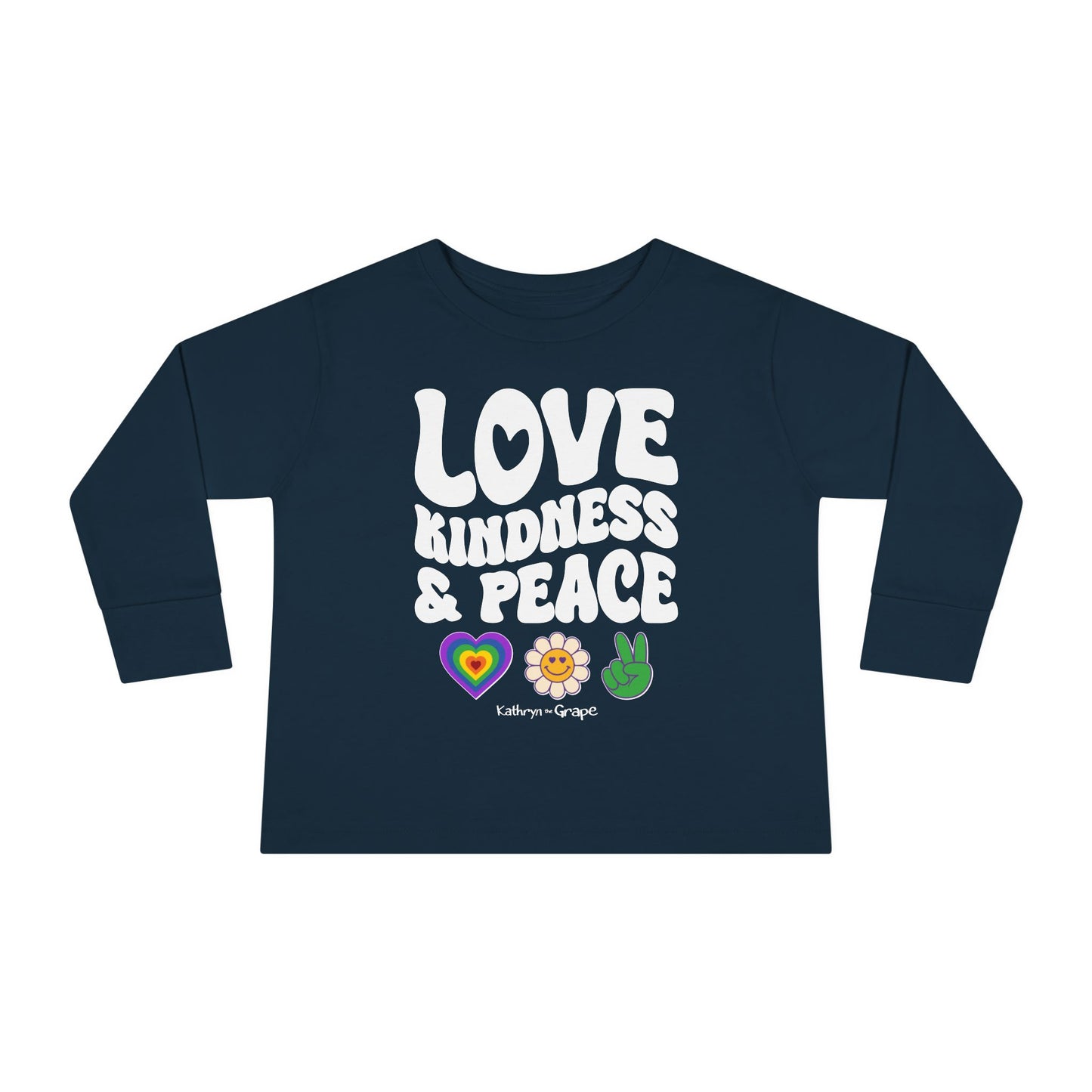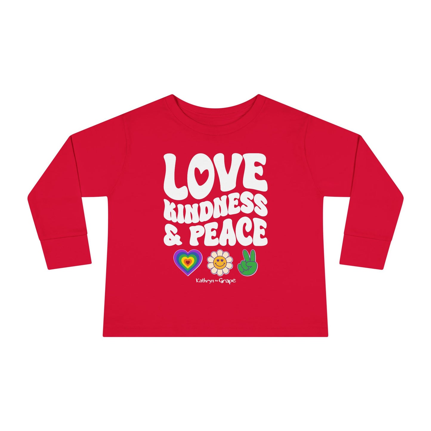 Kathryn the Grape Love, Kindness, and Peace (white) Toddler Long Sleeve Tee