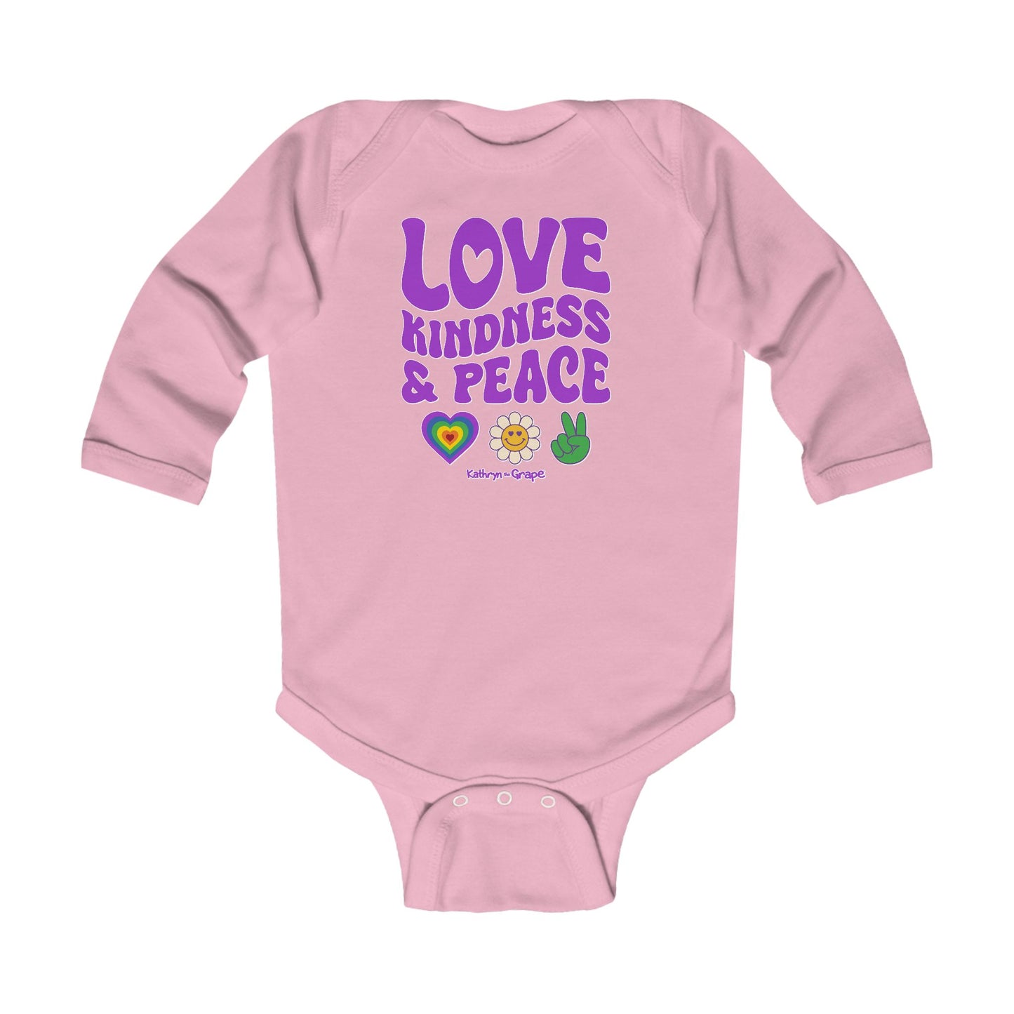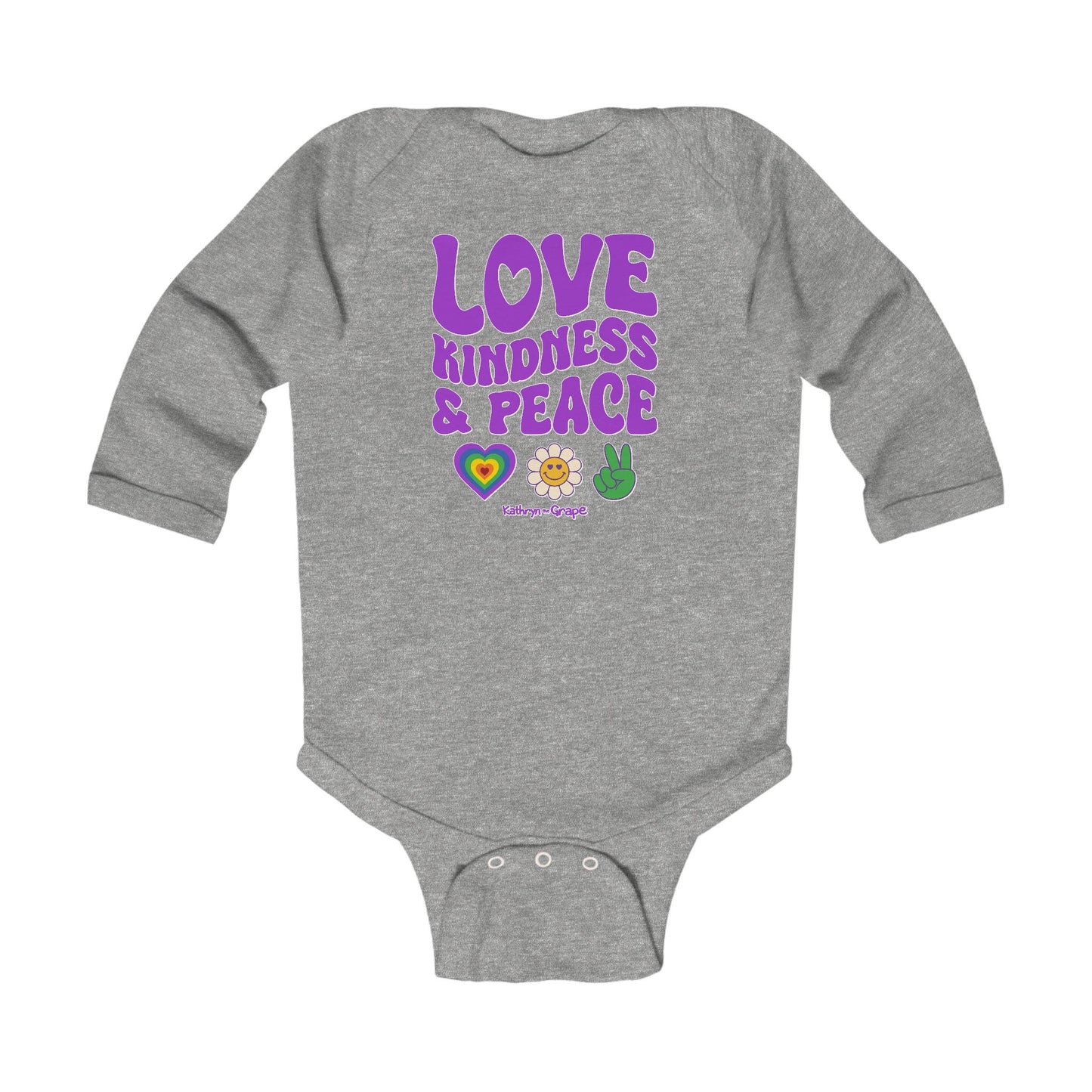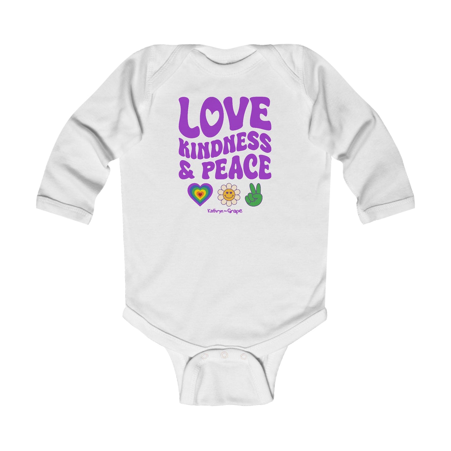Kathryn the Grape Love Kindness & Peace Infant Bodysuit - Cute Baby Long Sleeve Shirt