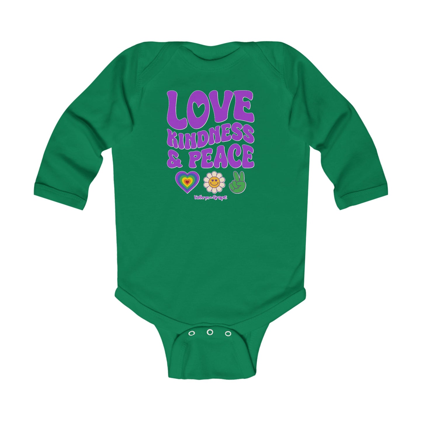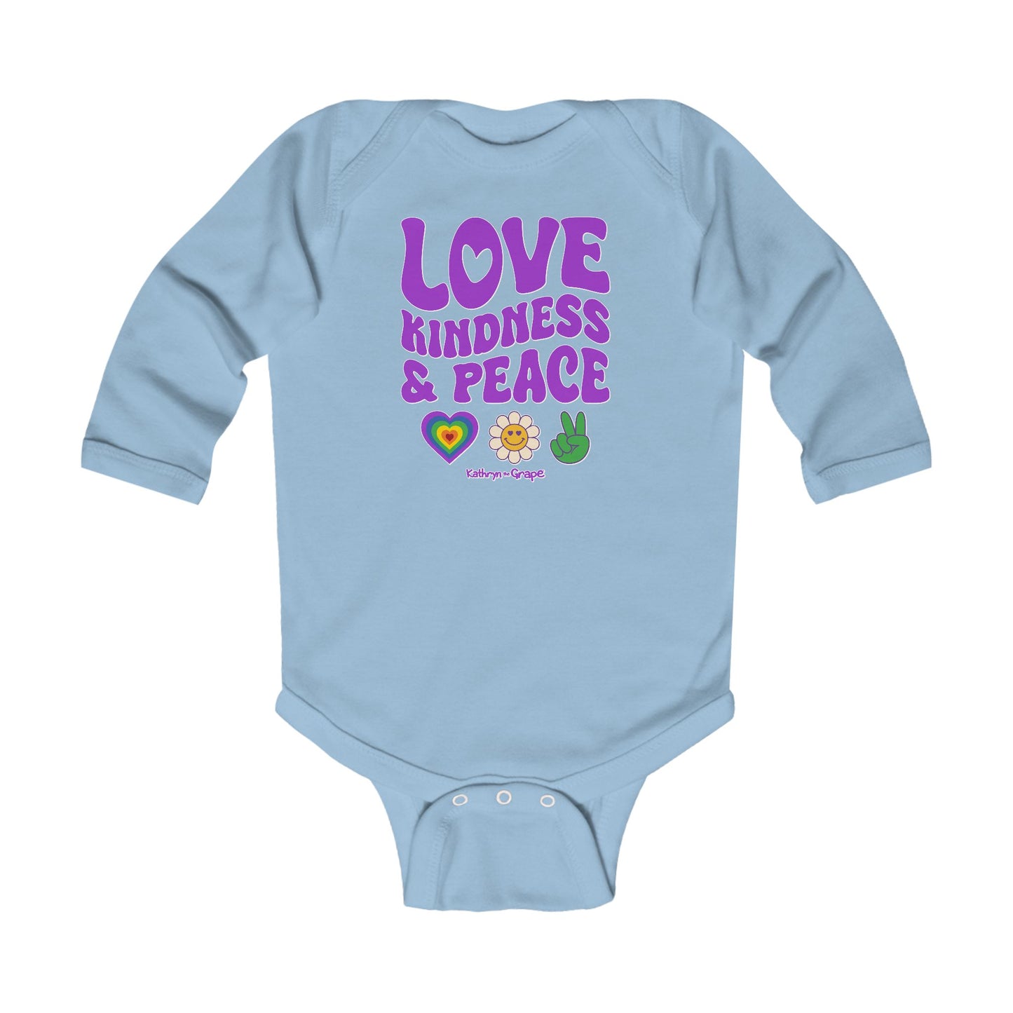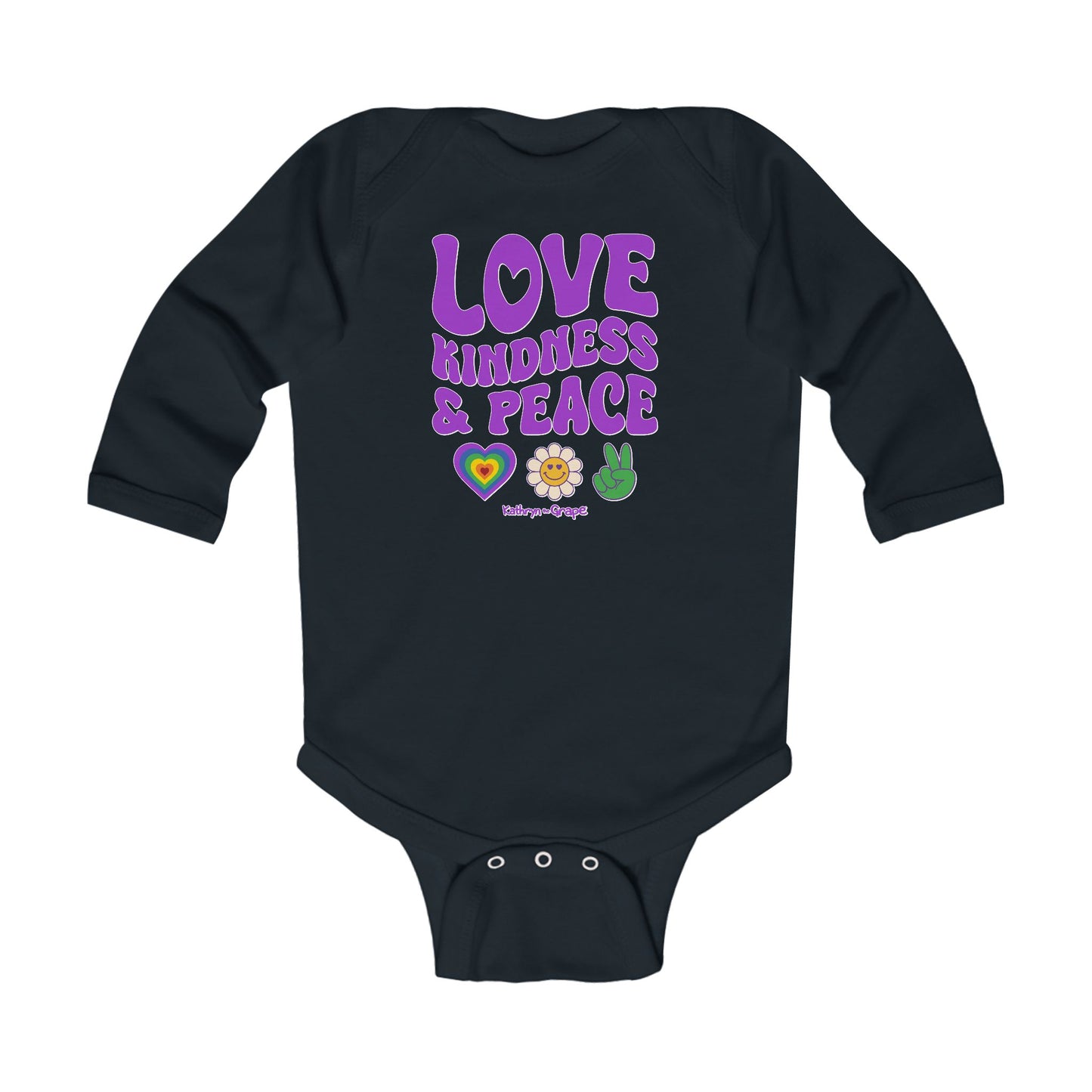 Kathryn the Grape Love Kindness & Peace Infant Bodysuit - Cute Baby Long Sleeve Shirt