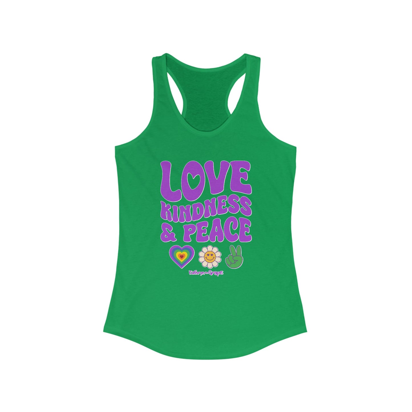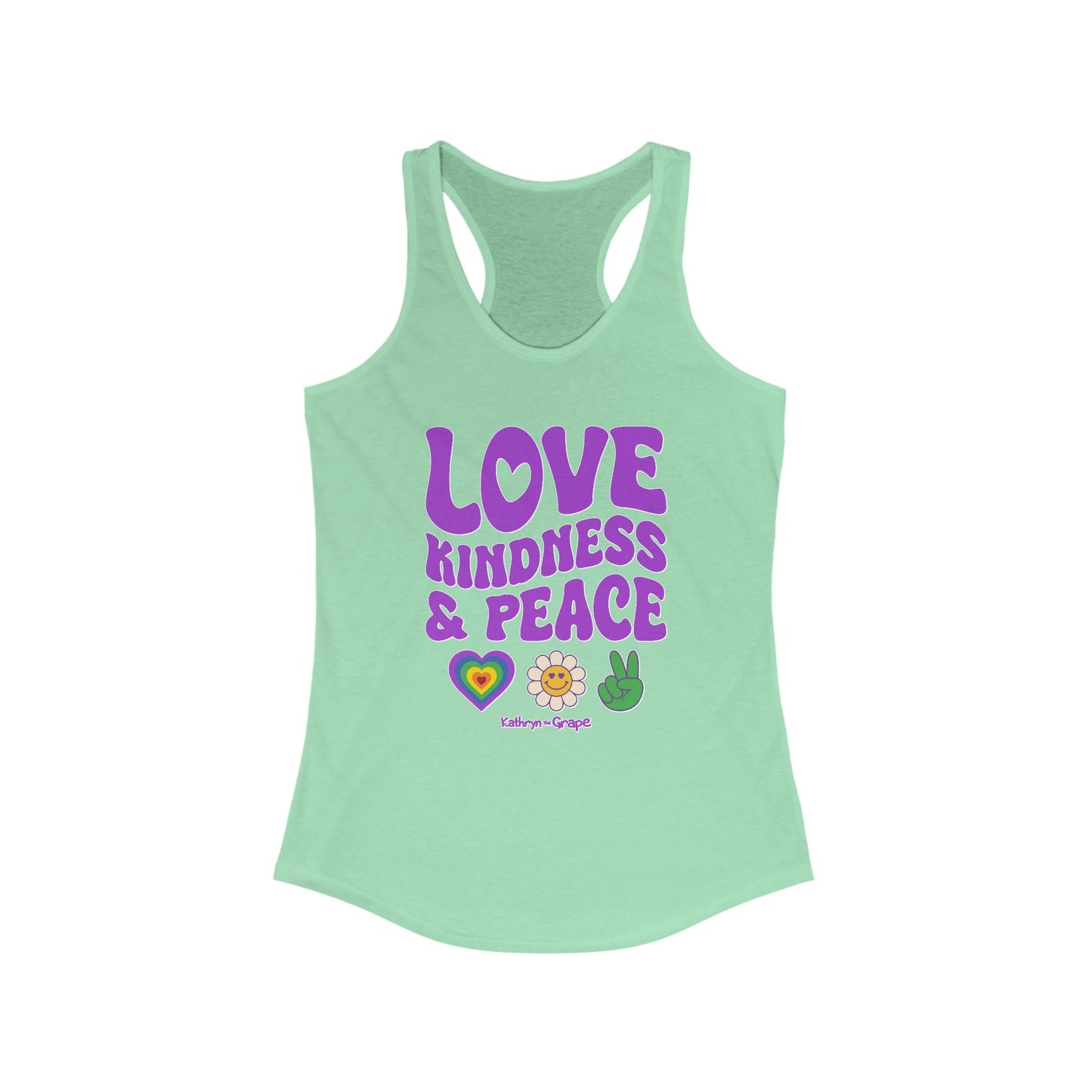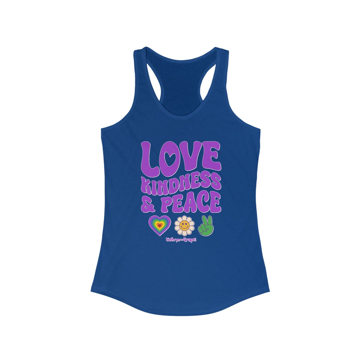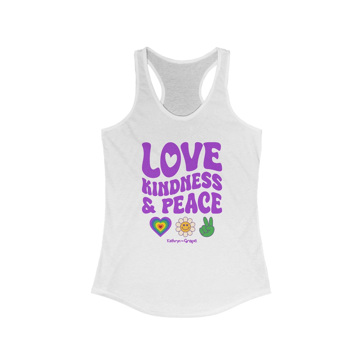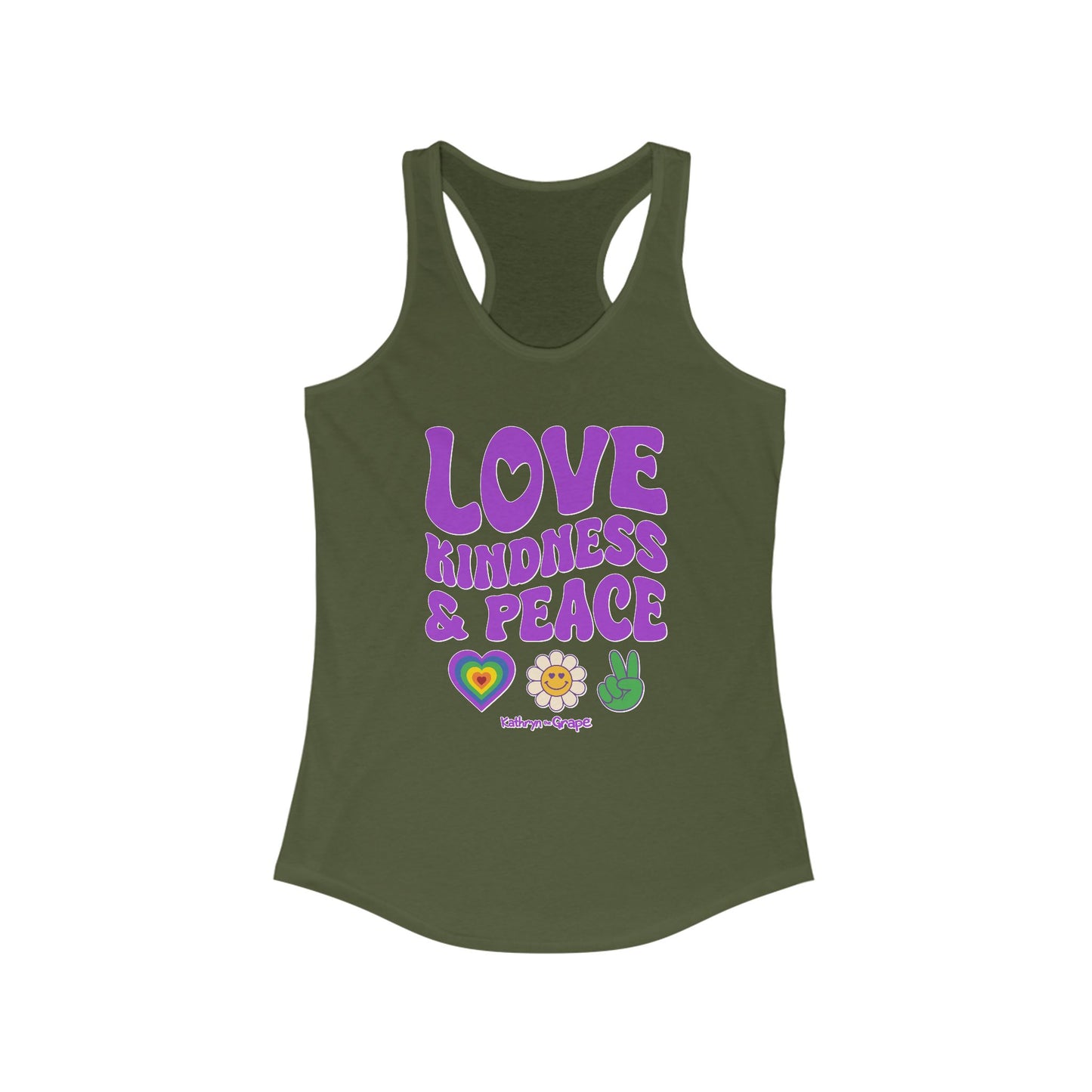 Kathryn the Grape Love, Kindness, and Peace (purple) Women's Ideal Racerback Tank